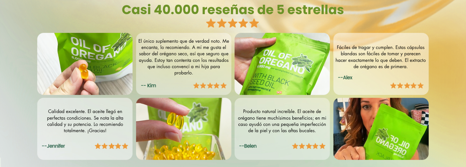 Cada softgel incluye aceite de orégano de alta potencia (6.000 mg) y aceite de semilla negra/Nigella sativa (200 mg) en una base de cápsula blanda.